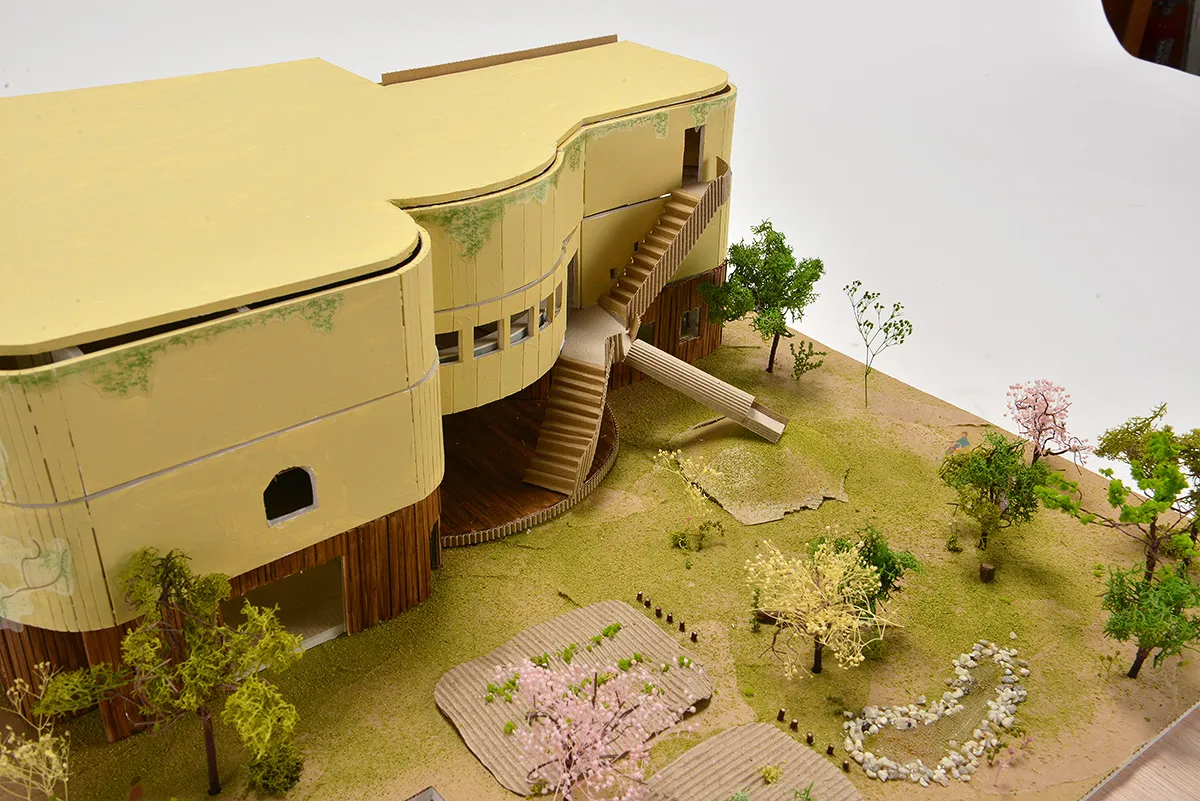 自分が子どもだった頃、どんな場所で過ごす時間が好きだっただろう。自分が子どもを持った時、親子でどんな場所に訪れたいと思うだろう。我が子を取り巻く環境として、どんな場所を望むだろう。と、日頃保育士として子育てをサポートする中で、その人の身になって考える場面が多々あります。こうありたい、こうあるべきと願っても、私たち保育士は、決められた建物や園庭でしか保育をすることができないことに、葛藤することもあります。そんな保育士としての私のフラストレーションが、建築デザインを学ぶ原動力でした。子どもと、子どもに関わる全ての人の「実りある心豊かな暮らし」を願い、福祉の範疇を超えた特別な子育て支援施設を計画しました。